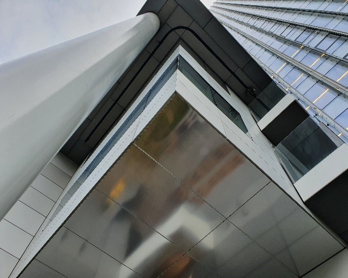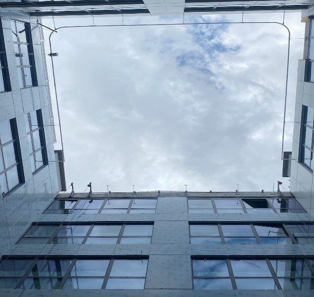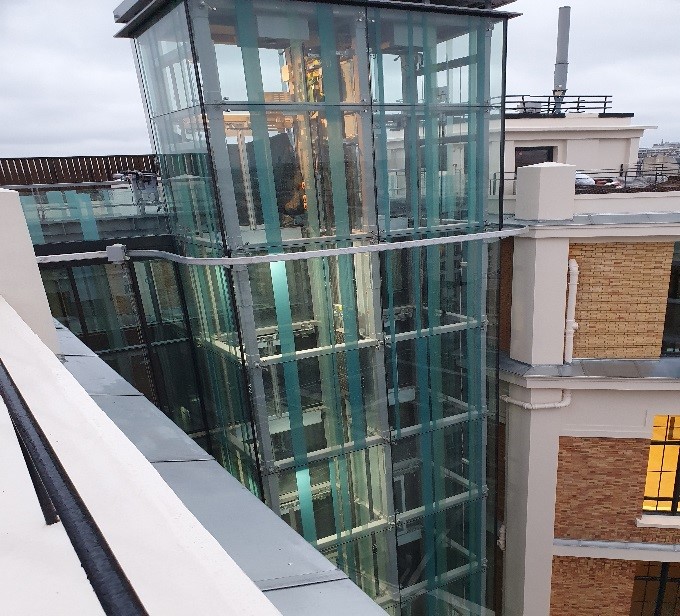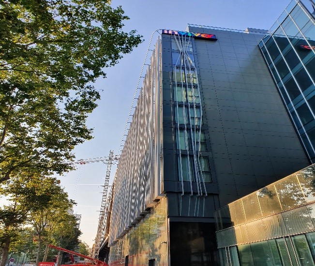 Ce rail est boulonné en bout de consoles en acier thermo laqué elles même chevillées dans les façades béton ou boulonnées dans les structures métalliques au travers des habillages éventuels (Vitrages, panneau aluminium, pierre, …).